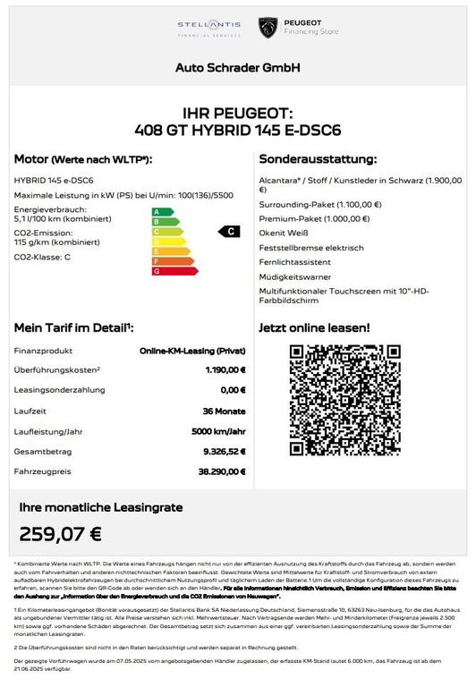 Peugeot 408 5.000 km 38.980 € Garbsen 30826