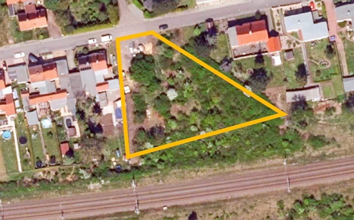 Unbebautes Grundstück mit natürlichem Baum- und Strauchbewuchs. Hinter dem Grundstück verläuft eine aktive Bahnstrecke. Teilweise Fremdnutzung durch Nachbarn (Lager, Trampolin,... mehr erfahren