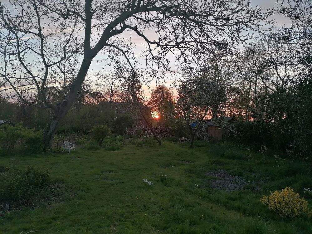 Vom Freizeitgrundstück zum Bauplatz. Mit verschiedenen Obstbäumen jeweils am Rand des Grundstücks. Der Bauplatz wird von einem bestehenden Grundstück mit Wohnbebauung herausgelöst. Zur Zeit läuft eine Bauvoranfrage.