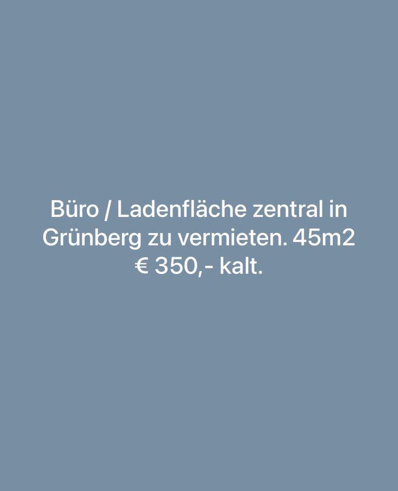 Vermiete eine Büro / Ladenfläche unweit vom Marktplatz in Grünberg. Kleine Toilette sowie Lagerflächen und Möglichkeit für eine Küchenzeile vorhanden.