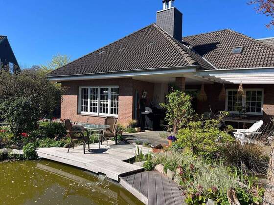 Mehr zum Angebot Charmantes Einfamilienhaus mit Keller, Einliegerwohnung, Teich und Doppelgarage: