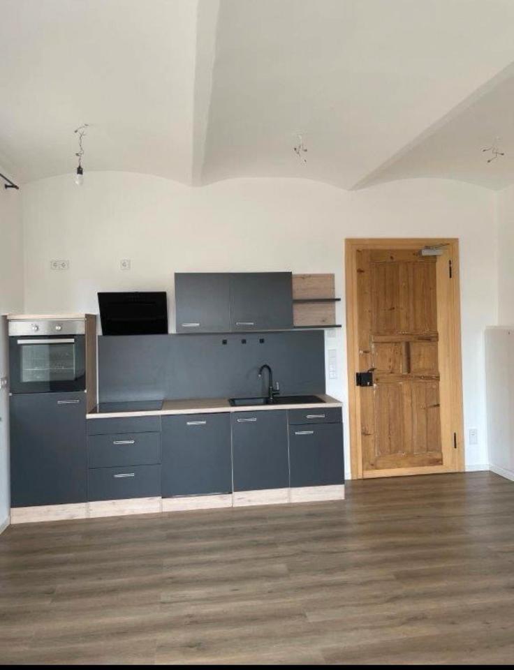Wir vermieten eine wunderschöne hohe 1-Zimmerwohnung mit einem Bad mit begehbarer Dusche Schwallbrause, Handtuchtrockner, einem Schlafzimmer, ein Wohn-Ess Küchenzimmer.