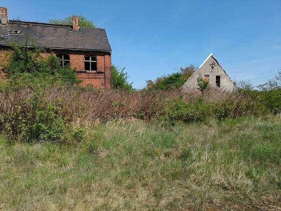 - Grundstück bebaut mit einem teils eingestürzten Ziegelhaus und einem weiterem maroden eingeschossigen Haus