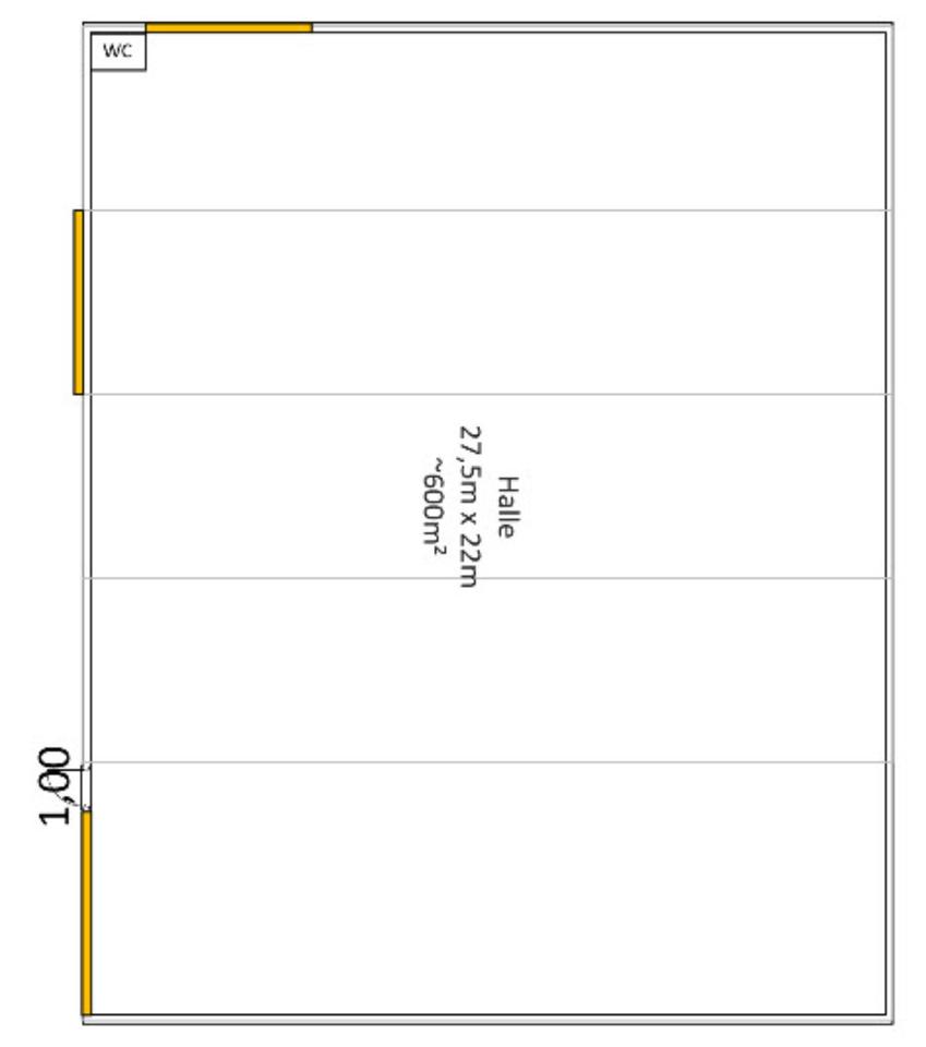 Halle ist mit 4m hohem Segment-Tor befahrbar.