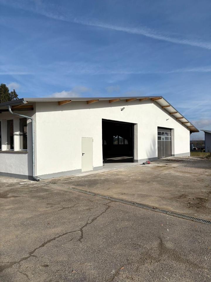 In Zoznegg bei Stockach vermieten wir eine Halle mit ca. 220 m² Fläche inklusive viel Außenfläche.