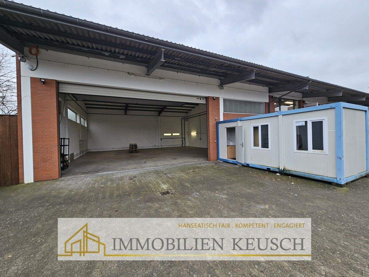 Große Lagerhalle mit elektr. Rolltor und Containerbüro in Gewerbegemeinschaft-Nähe Autobahnauffahrt