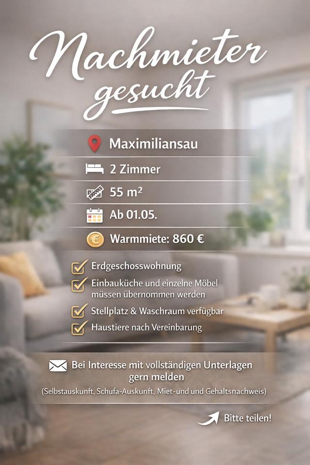 Ich suchen einen Nachmieter für meine modernisierte und helle 2-Zimmer-Wohnung in Maximiliansau. Die Wohnung befindet sich im Erdgeschoss und überzeugt durch ihre großzügige Raumaufteilung und die ruhige Lage.
