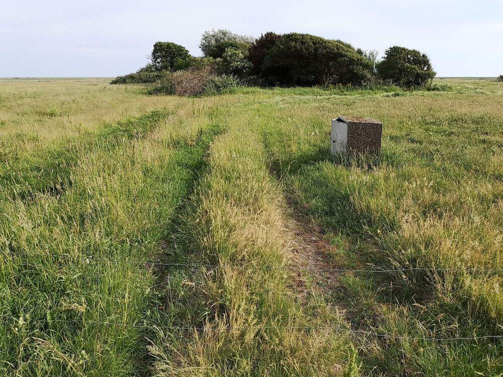 Grundstück mit Resten der ehemaligen Bebauung. Das ca. 42 m breite und ca. 131 m tiefe Grundstück wurde ca. 1939/40 mit einfachen Unterkunftsgebäuden Soldaten bebaut.