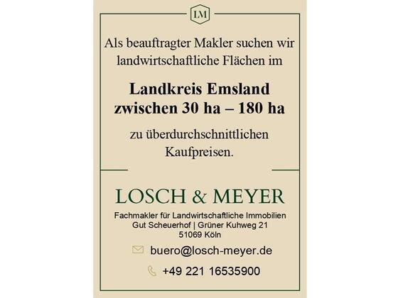 Mehr zum Angebot Kaufgesuch; Landwirtschaftliche Flächen zwischen 30 ha - 180 ha im Landkreis Emsland:
