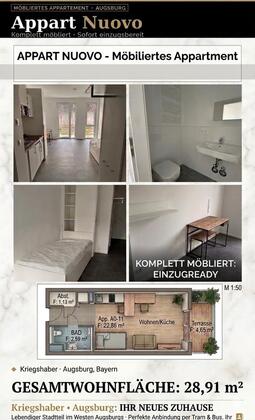 1-Zimmer-Apartment | 29 m² | möbliert | Nähe Uniklinik Augsburg