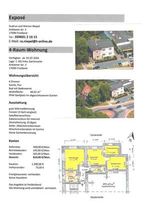 Mehr zum Angebot 4 Raum Wohnung - 1. OG links (Gartenseite):
