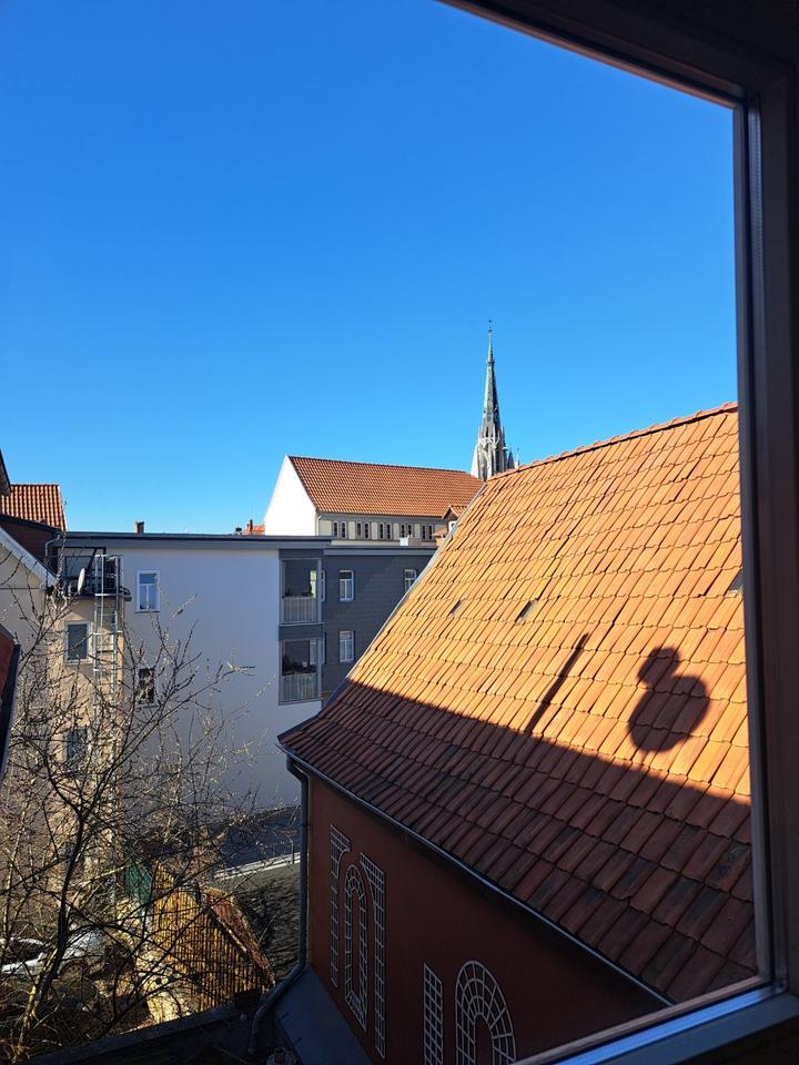 Die Wohnung befindet sich im Dachgeschoss (3. OG) und man hat einen herrlichen Blick auf die Marienkirche.