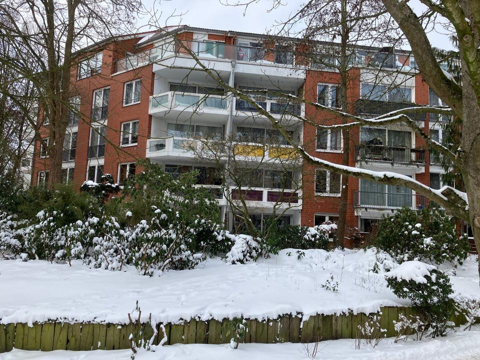 Die frisch renovierte Wohnung verfügt über einen großzügigen Balkon zum Park mit See.
