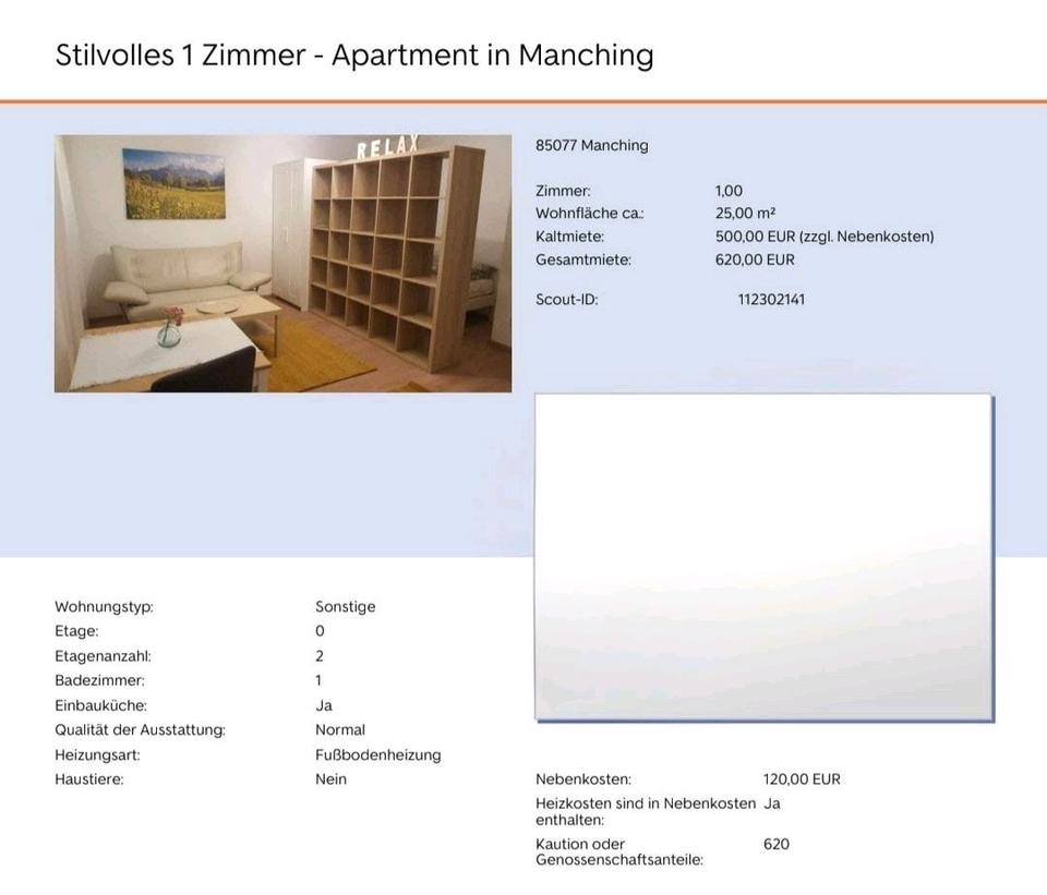Mehr zum Angebot Stilvolles 1 Zimmer - Apartment in Manching: