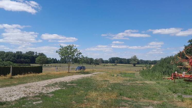 Freier nicht verbauter Blick auf weite Wiesen und Felder.