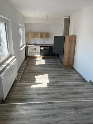 Die Wohnung hat 3 Zimmer, eine offene Küche/Wohnzimmer, Bad, Abstellkeller.