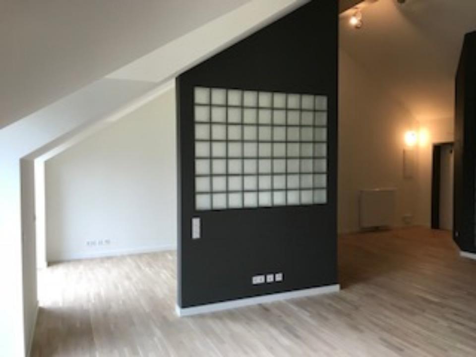 Ein großer lichtdurchfluteter Raum mit Trennwand, hier wäre auch ein Schlafbereich möglich. siehe Bild 1