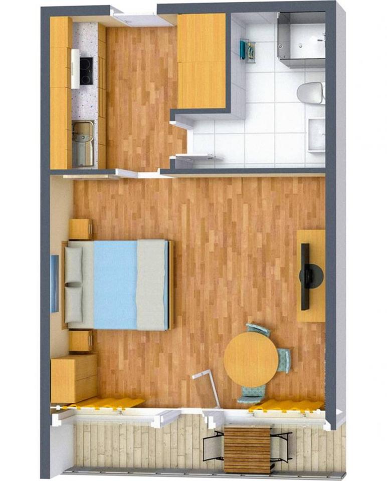 Optimal genutzt, bietet dir das Apartment alles, was du zum Studieren brauchst. Die integrierte Designer-Küche verfügt über 2 große Herdplatten, einen sparsamen Kühlschrank und eine moderne LED-Beleuchtung unterhalb der... mehr erfahren