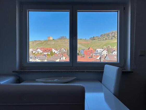 Entspannung im schönen Weinbaugebiet Stetten im Remstal mit Blick auf die Y-Burg.