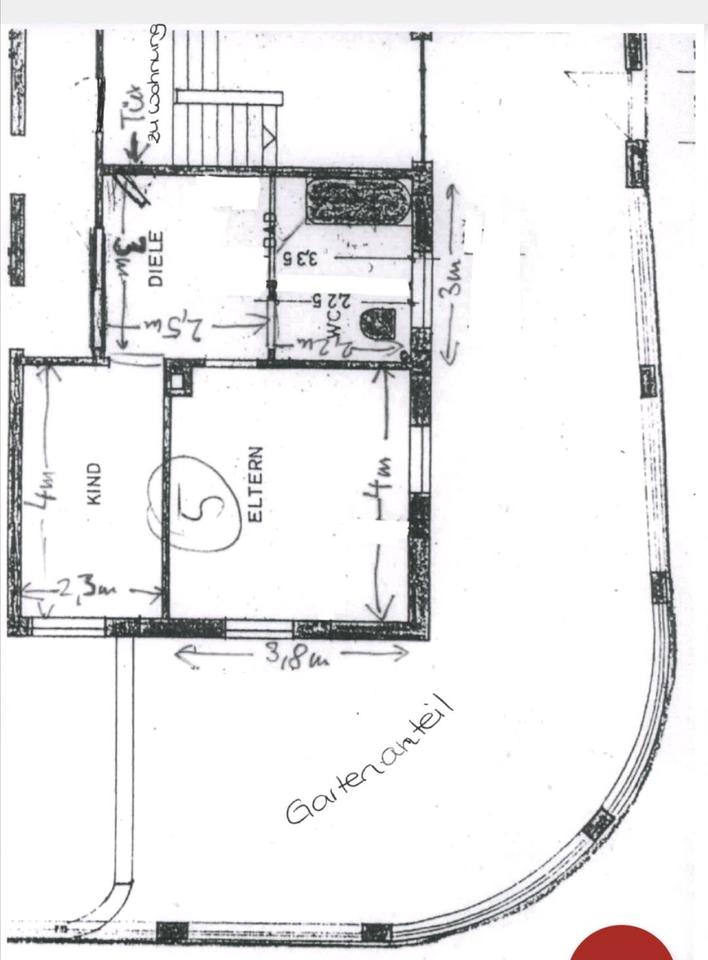 Wohnung im EG mit Gartenanteil und 2 Kellerräumen in einem Haus mit insgesamt 5 Wohnungen. Das Haus verfügt über eine Gasheizung.