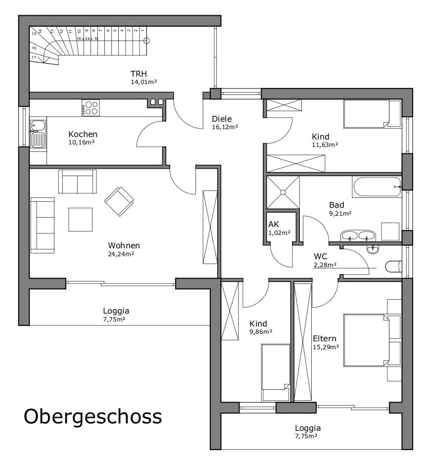Mehr zum Angebot 4-Zimmer-Wohnung mit Einbauküche & 2 Loggien: