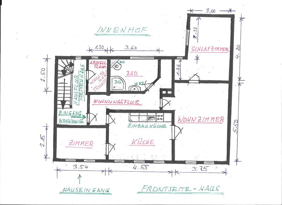 Wohnung 75qm zuzüglich 3,25qm beheizbarer, mit Wasseranschluss vorhandener Abstellkammer mit Außenfenster (siehe Grundriss), geeignet als Lagerraum und für Waschmaschine und Trockner. Ges. = 78,25qm